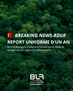 Actualite BREAKING NEWS / RDUE – Accord provisoire Parlement/Conseil sur le report et l’allègement du règlement déforestation -